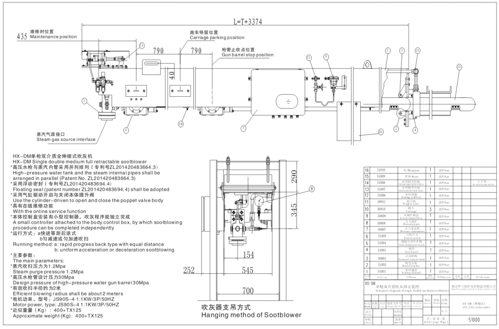 HX-DM single gun Dual-media soot blower